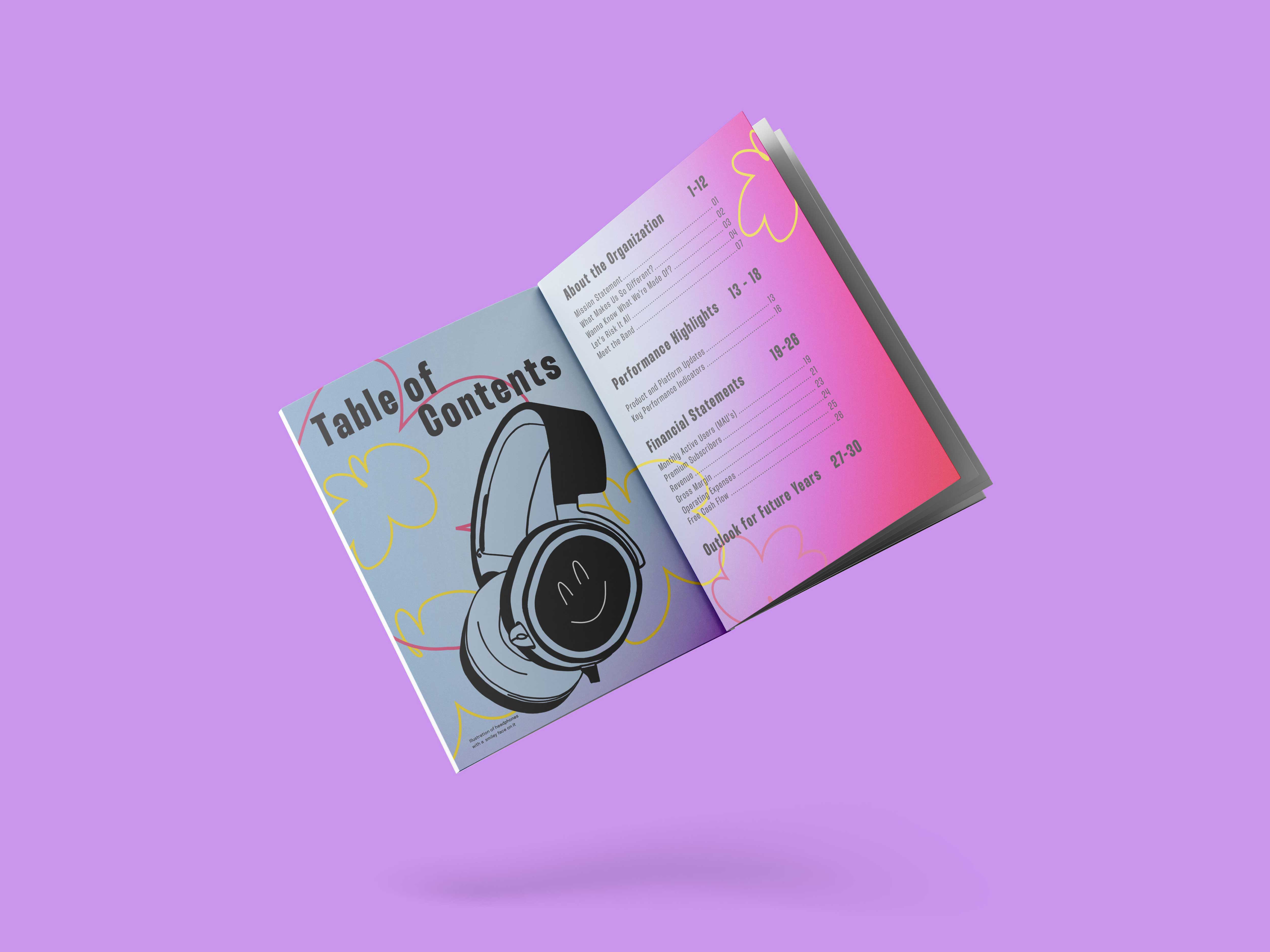 I completed an exercise where I was tasked to redesign an annual report for a company of my choosing. I decided to do this redesign for Spotify since they are a company that I admire and have an aesthetic that I enjoy. Shown here are some of my favorite spreads that I believe has a good show of layout, typography, and unique interpretation of the Spotify brand. My goal was to create an annual report reminiscent of the iconic year-end Spotify Wrapped and to bring a human touch to it as well as a sense of individuality and fun to something normally thought of as boring. All in all, this was an incredibly fun exercise and I enjoyed both the process and the outcome. You can find the full annual report publication here.