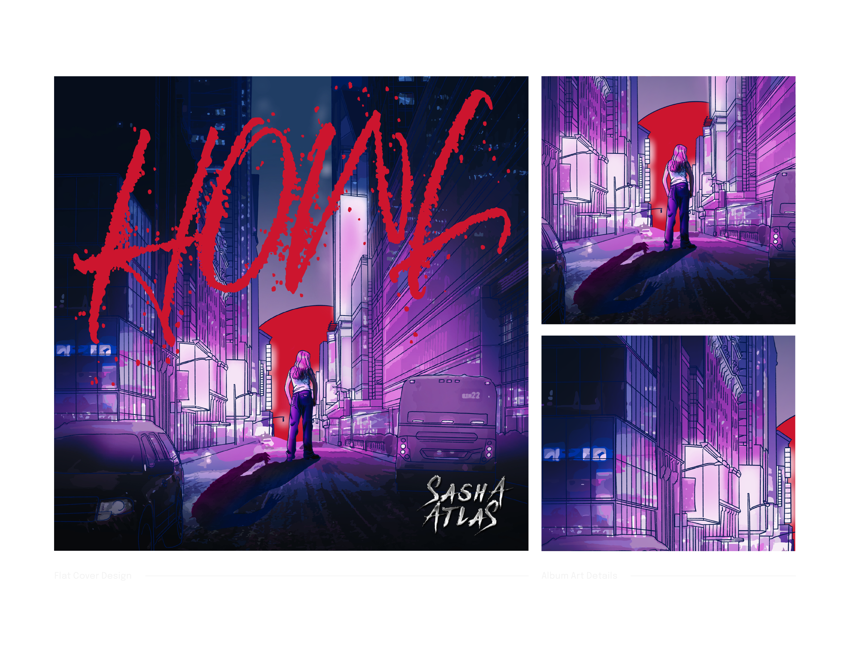 While freelancing for the company, Evergreen Entertainment, I’ve been able to create design work for various musicians. Among them have been artists like Sasha Atlas, DNJNBBY, and Kayla Thompson. I feel that these cover designs show off my versatility, creativity, and ability to work with artists to execute their vision.